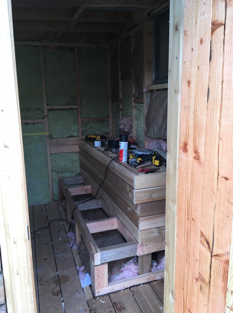 But my plans with this sauna is to sit and write in it. Not turned up to the typical 180 degrees, but more like 100. If even that sounds intense, it would be like our apartment in Cairo from April through October. But like with all my building projects, this is taking much longer than I had expected and distracted me from taking the time to write. It has also cost more than I expected. I was going to build it out of recycled materials. While the siding is recycled split rail cedar from fences, the rest is mostly new material. It is almost done.