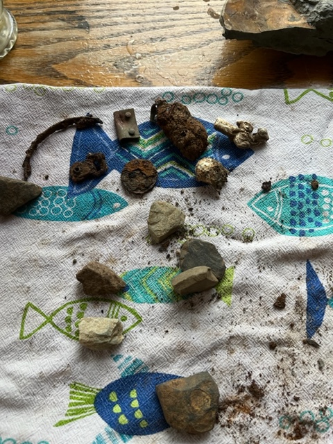 For the last two weeks, while I’m waiting on permits, I’ve been hand-digging trenches trying to find the buried plastic water pipe. With the help of an old resident, who was in the area when the pipe was laid, and with the help of LIDAR, I think I’ve located the general area. But the archeologist in me forces me to sift the dirt I take out of the ground. Being beside an old lake is a great place for an prehistoric settlement from the end of the last ice age (See Orcas Island’s Ayer Pond , see also Triquet Island, BC ). So far, I’ve found several white-man artifacts and possibly a small piece of a stone bowl (hard to tell) that was from sediments at the end of the ice age. Never send an archeologist to excavate a site for new construction.