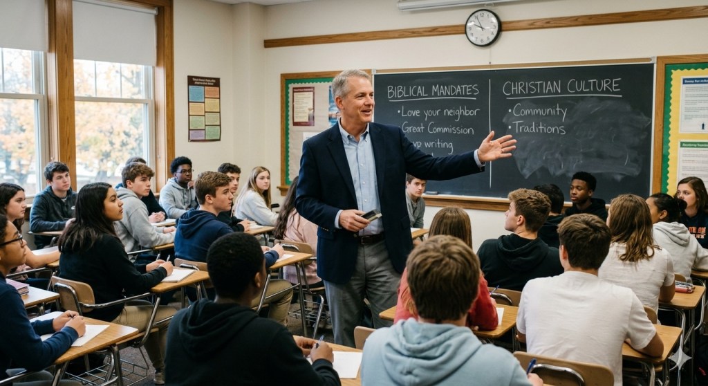 On the first day of class, I did an exercise in which I listed about twenty “Christian” items and asked the class to place each in one of two categories: Biblical Mandates and Christian Culture. In the list, I had things as diverse as “love your neighbors,” “Church that starts at 10 AM on Sunday,” “not murdering,” “sitting in pews,” “singing hymns,” etc. To my shock, they listed every single item as “Biblical mandate.”